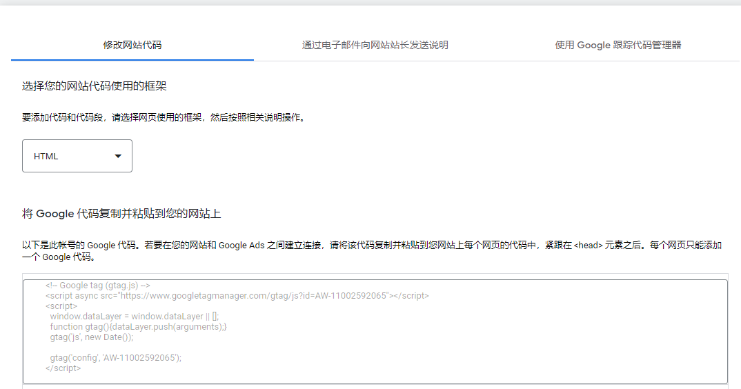 第三步:填完上述内容后,下一步就要添加代码到网站上了。这边选择自行添加代码的形式,如下图所示: