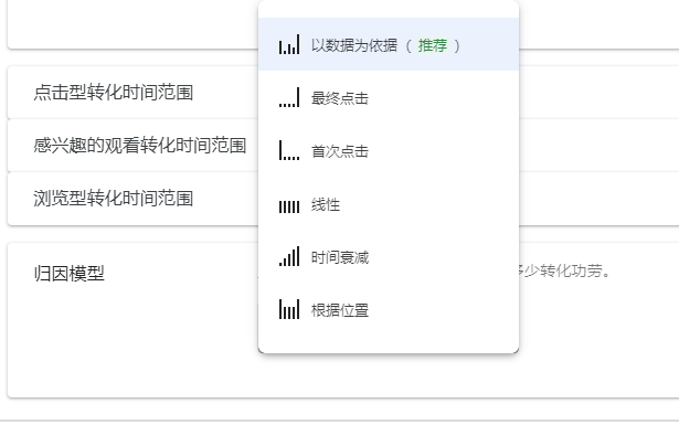 45%的转化需要2次以上的广告点击,归因模型就是设置如何分配多次广告点击的功劳。咱们可根据各自情况选择。