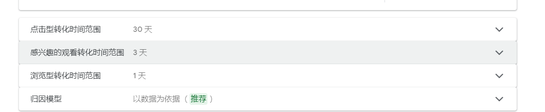 浏览型转化时间范围:与点击型转化时间范围同理,浏览型转化时间范围是指,用户仅仅是浏览过我们的广告,过了多长时间以内,用户实现转化还归功于广告。